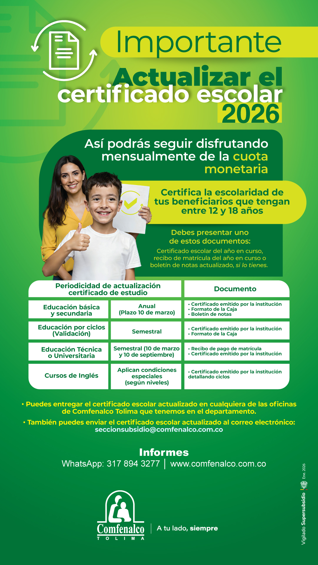 Recuerda reclamar mensualmente el subsidio Familiar en dinero, y consultar el saldo permanente para verificar el efectivo giro y evitar la prescripción por no cobro oportunamente.