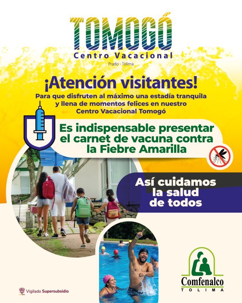 - Ingreso al Centro Vacacional Tomogó: piscinas, parque acuático, escenarios deportivos, zonas verdes.
